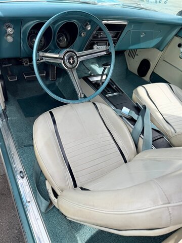 Stunning Tiffany Blue, paired with a white convertible top and white interior, giving it a clean, classic, and eye-catching appearance that turns heads everywhere it goes. The color combination suits the lines of the first-generation Camaro perfectly and presents exceptionally well.