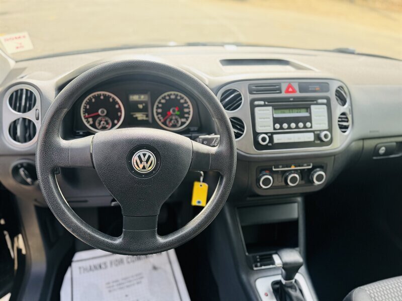 Introducing the 2010 Volkswagen Tiguan SE, a stylish and practical SUV that packs a punch with its powerful 2.0L I4 Turbo engine, boasting 200 horsepower and 207 ft. lbs. of torque. With under 69,000 miles on the odometer, averaging less than 5,000 miles per year, this Tiguan is in excellent condition and ready for its next adventure. The factory default features includes a 6-disc CD changer, satellite radio, and Bluetooth connectivity for hands-free calling and audio streaming. The Tiguan SE also comes with 16-inch alloy wheels, and a leather-wrapped steering wheel. Don't miss out on this impressive SUV that's both sporty and practical.